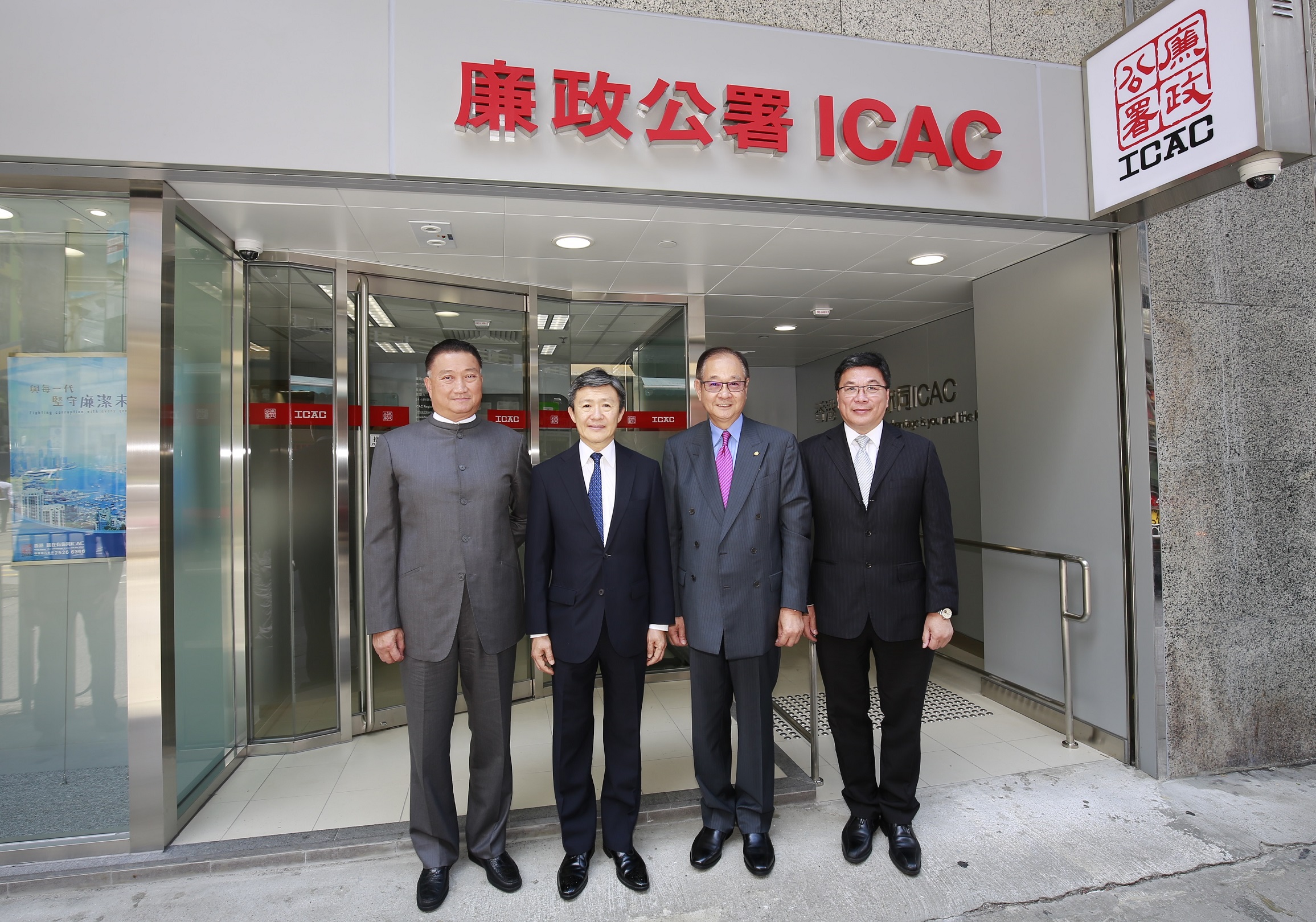 ICAC Commissioner Simon Peh (2nd from left) and three District Council Chairmen pictured at the relocated Regional Office (Kowloon East/Sai Kung).
