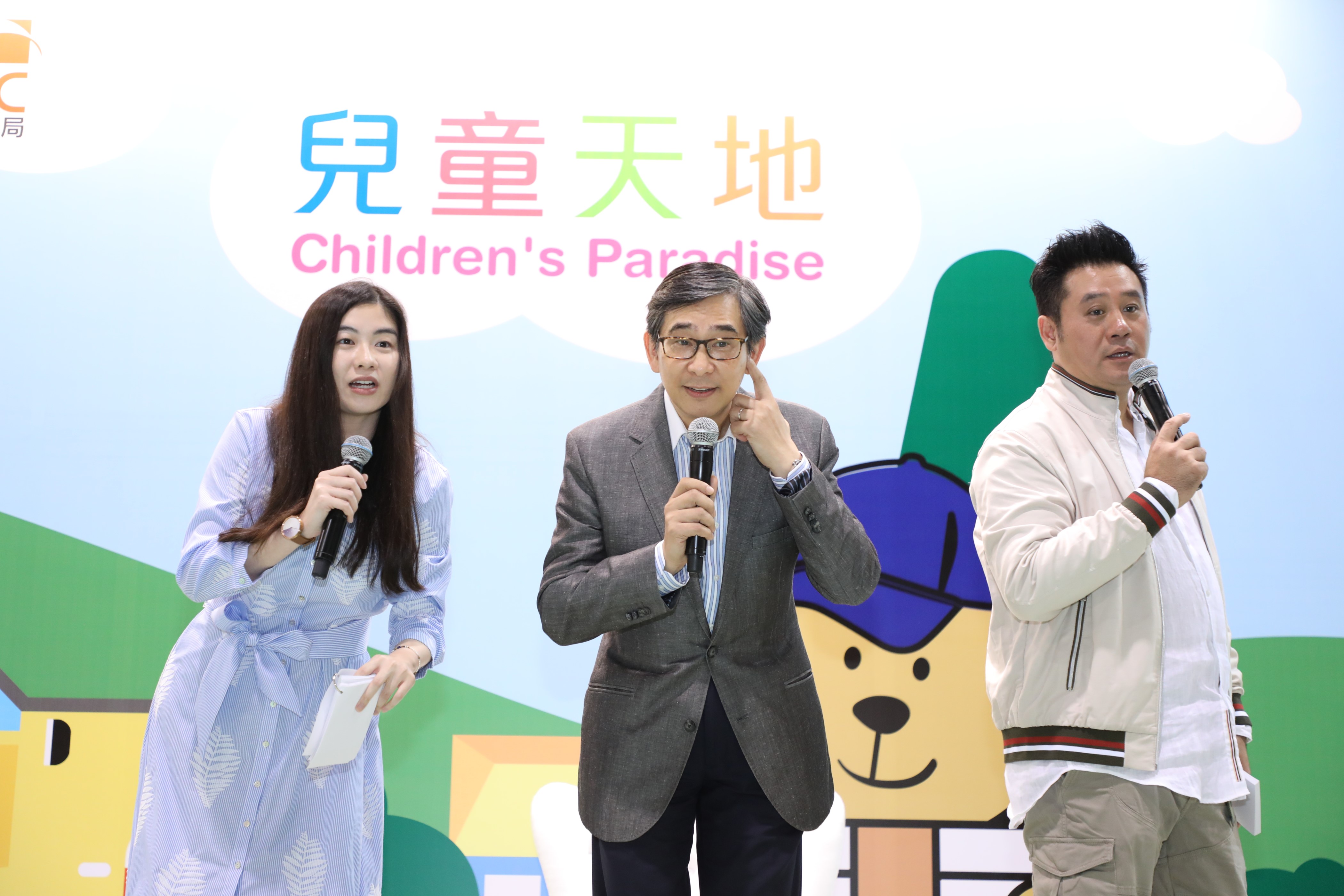 At today’s storytelling session, artiste Mr Evergreen Mak Cheung-ching, who made recurrent appearances at the “ICAC Investigators” TV drama series and other ICAC training videos, joined Mr Ng on stage and shared some candid parenting tips.