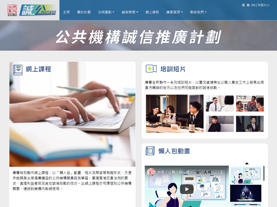 社关处在有关计划中推出全新防贪教育培训资源,包括一站式专题网站、培训短片、网上课程、诚信推广资料套等,透过多元化的资源让公共机构人员更简易掌握防贪法例要求和诚信管理要诀。