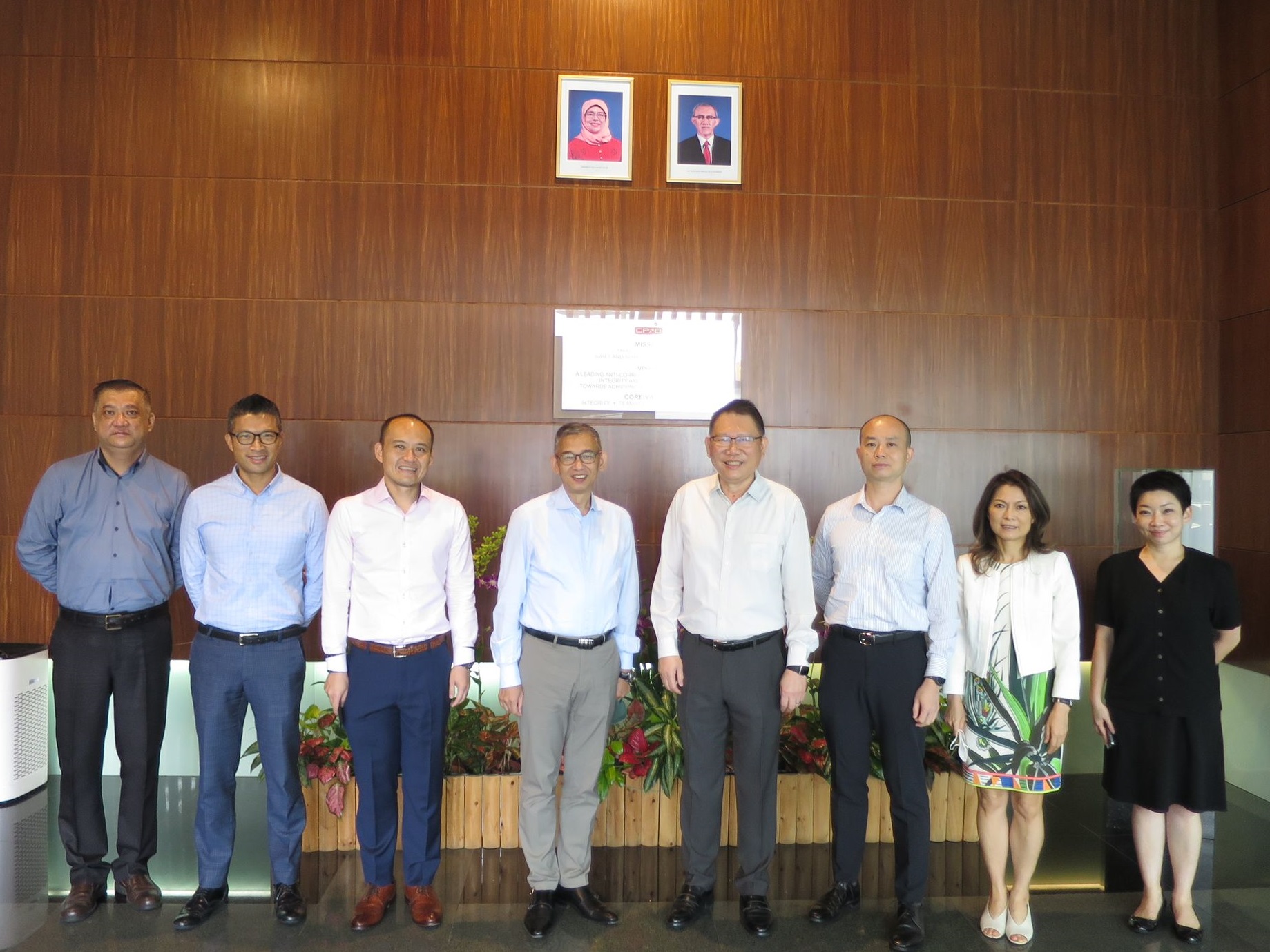 陪同胡英明到访新加坡的廉署人员包括执行处处长(私营机构)蔡树强、国际合作及机构事务处处长关仪兰、执行处首席调查主任黄伟杰及高级国际合作主任李雁茵。