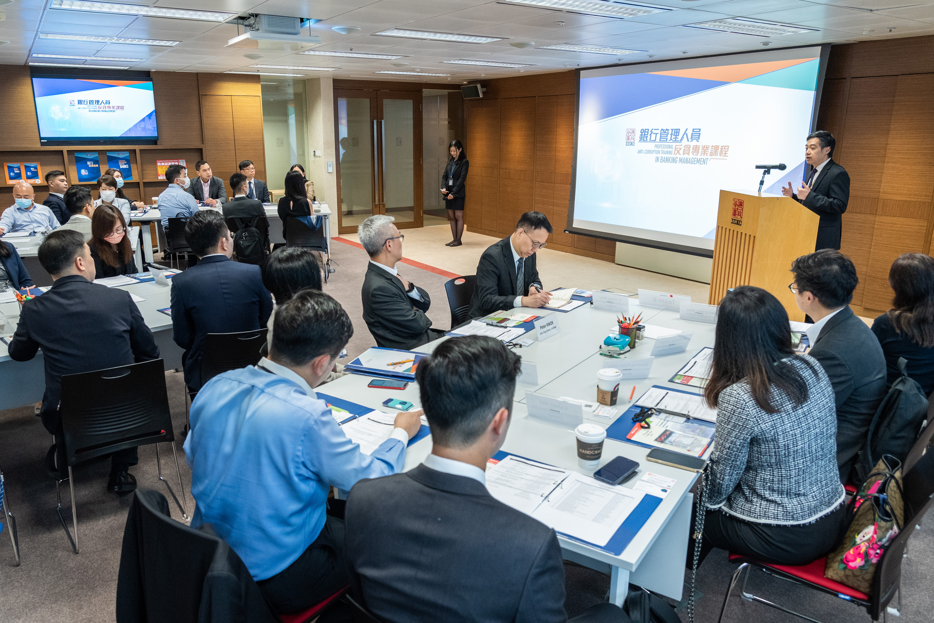 30多位银行业界高级管理人员,今日(3月31日)完成由廉政公署举办、为期两日的「银行管理人员反贪专业课程」,为全港首个加入「实战」研习的高水平专业反贪培训,亦是即将成立的「香港国际廉政学院」首个先导培训项目。