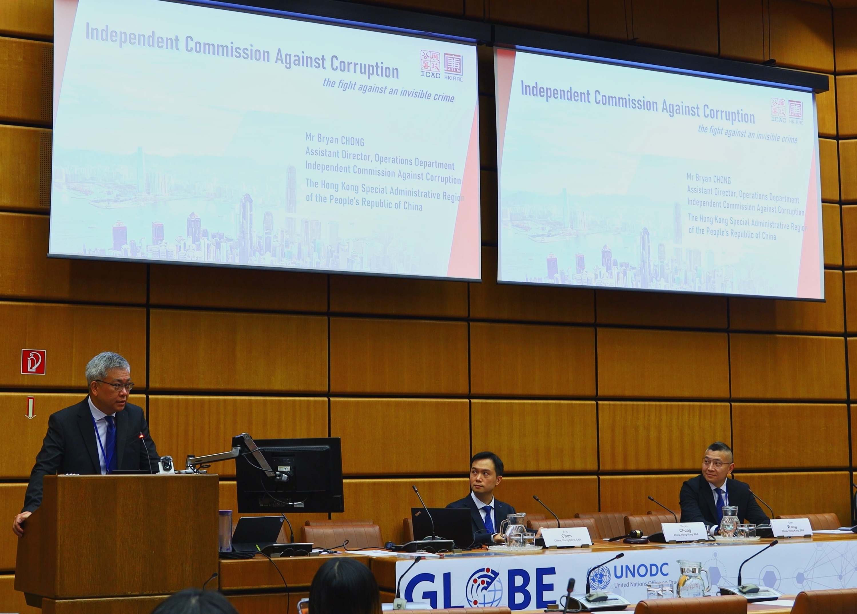 廉政公署首次应联合国毒品和犯罪问题办公室(毒罪办)邀请,在其维也纳总部为出席全球反腐败执法机构业务网络(GlobE网络)成员代表举办反贪工作坊,分享廉署如何善用科技,提升侦查贪污罪行的效能,获逾100名代表出席。