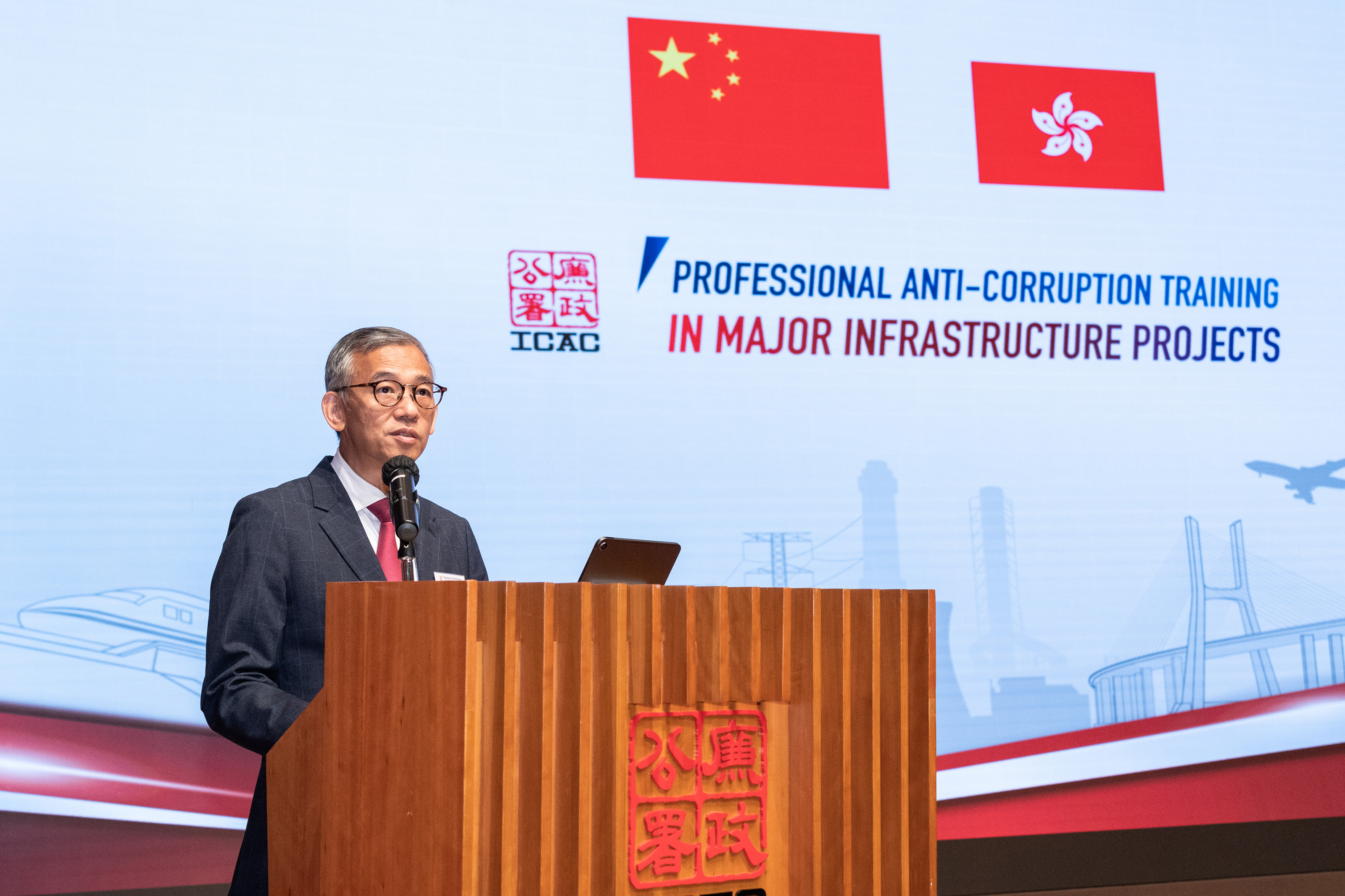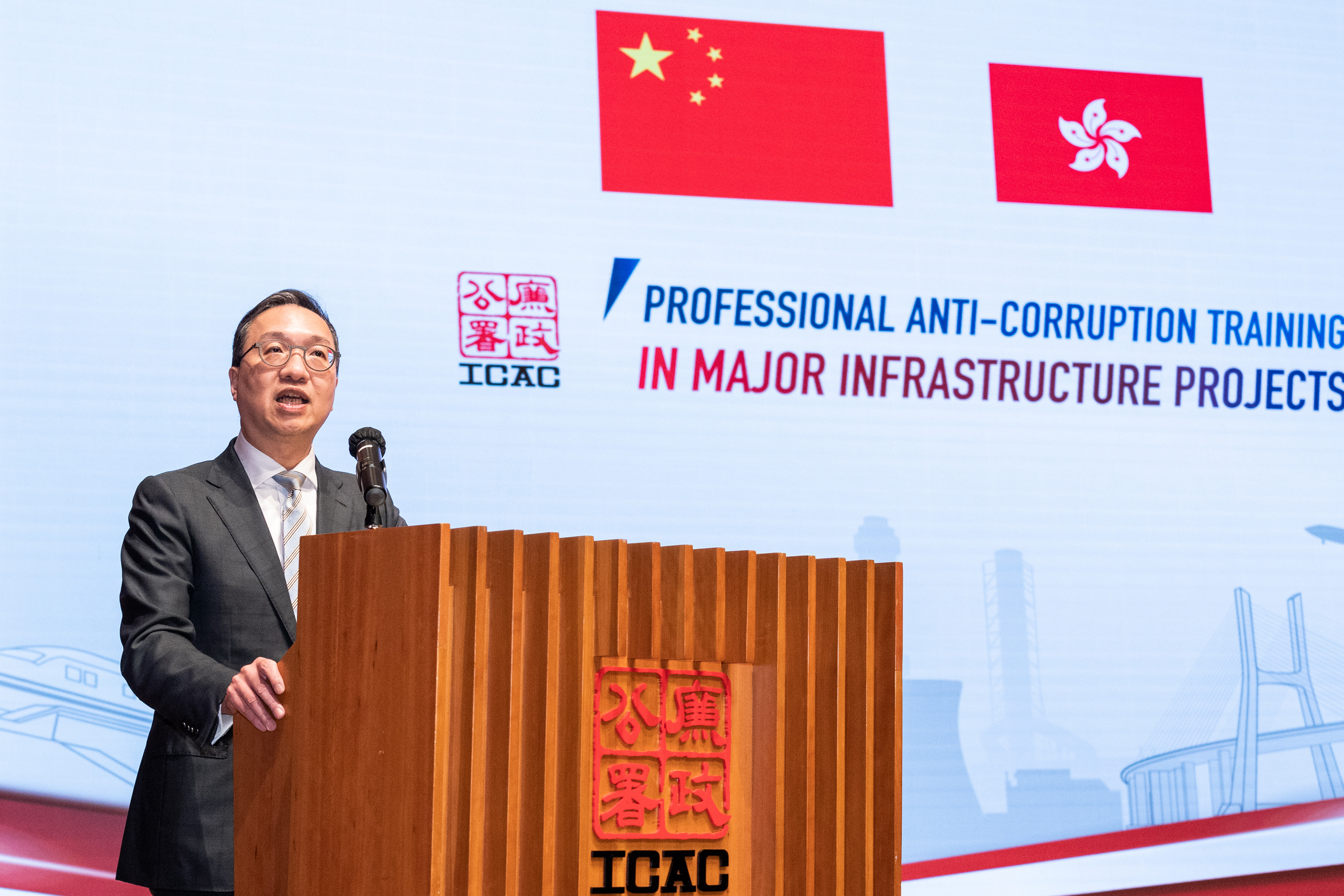 身兼特区政府「融入国家发展大局督导组」下设的「一带一路」发展小组组长,律政司司长林定国资深大律师亦在课程结业仪式致辞时表示,基建项目往往涉及庞大资金、激烈竞争及多层分判工程的情况,这些特征令不论公营部门或私营机构在执行项目时均可能出现贪腐情况。贪污破坏社会公平正义,阻碍经济合作与发展,影响政府公信力与法治,更可能导致基建项目无法完成。因此,提升大型基建项目的反腐败能力,尤其重要。