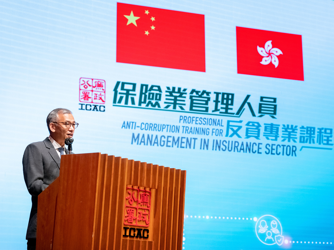 廉政专员胡英明今日(10月26日)于「保险业管理人员反贪专业课程」结业仪式致辞时表示,课程为装备保险公司高级管理人员,带领保险公司提高诚信管理水平。