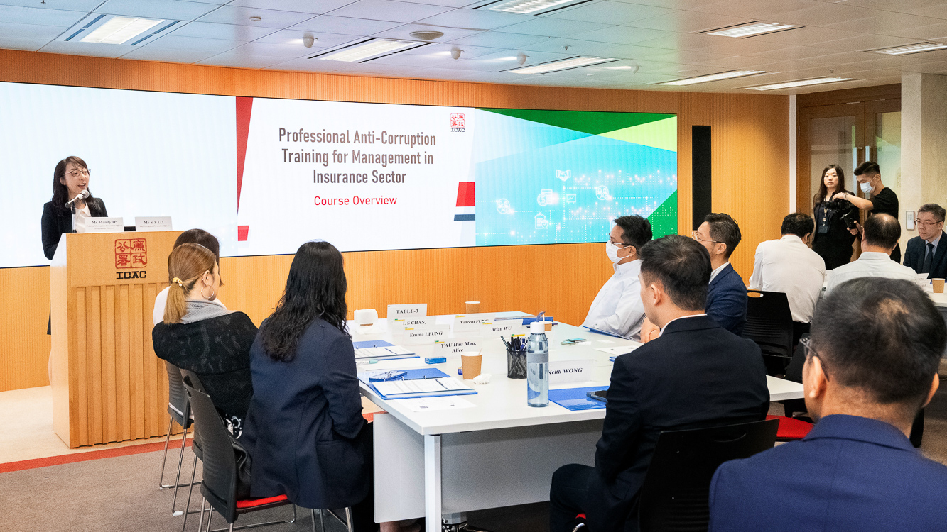 是次反贪专业课程由资深执行处调查人员解说近年保险业贪污情况,透过廉署真实个案,深入剖析保险业常见犯案手法和如何揭发相关罪行;防止贪污处人员讨论如何从源头减低保险业界贪污风险,和介绍各种防贪建议;社区关系处人员则分享在保险公司建立廉洁诚信文化的重要,并介绍廉署各种培训资源和支援。