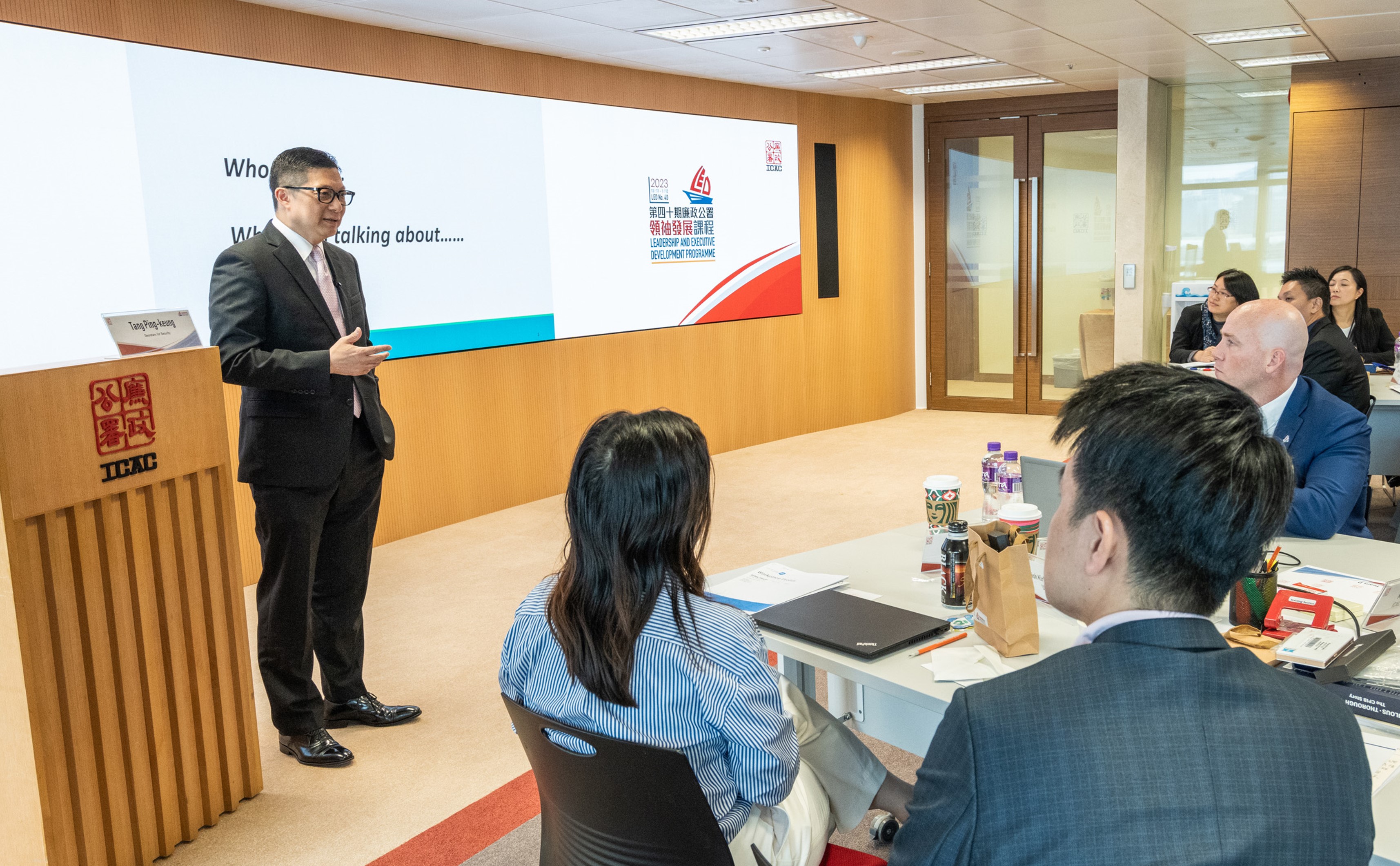 廉署今年亦首次邀请特区政府的司局长与学员分享。律政司副司长张国钧及保安局局长邓炳强分别就执法及法治等范畴,与学员分享真知灼见。