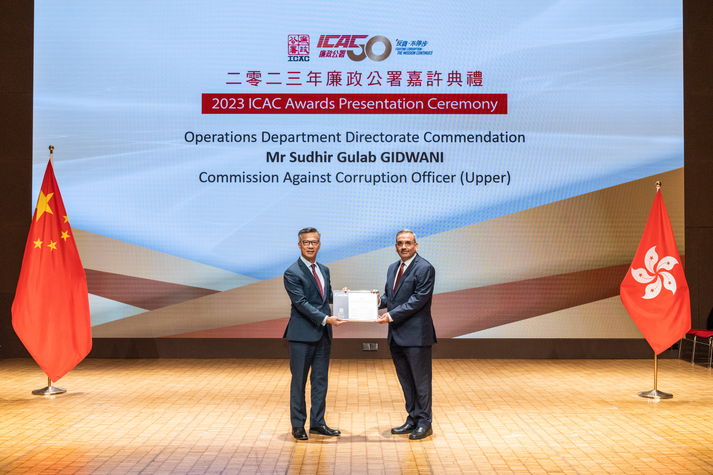 在今日的典礼上,五位调查人员获颁执行处处长嘉许状。其中四位调查人员获表扬在多宗涉及贪污渎职、公职人员行为失当和非法使用电脑案件中,表现卓越调查能力和尽忠职守,令涉案人士绳之于法和裁定罪名成立;另外一名调查人员则成功令一名向银行时任高层人员提供利益而被定罪人士的6,300万港元犯罪得益被没收。