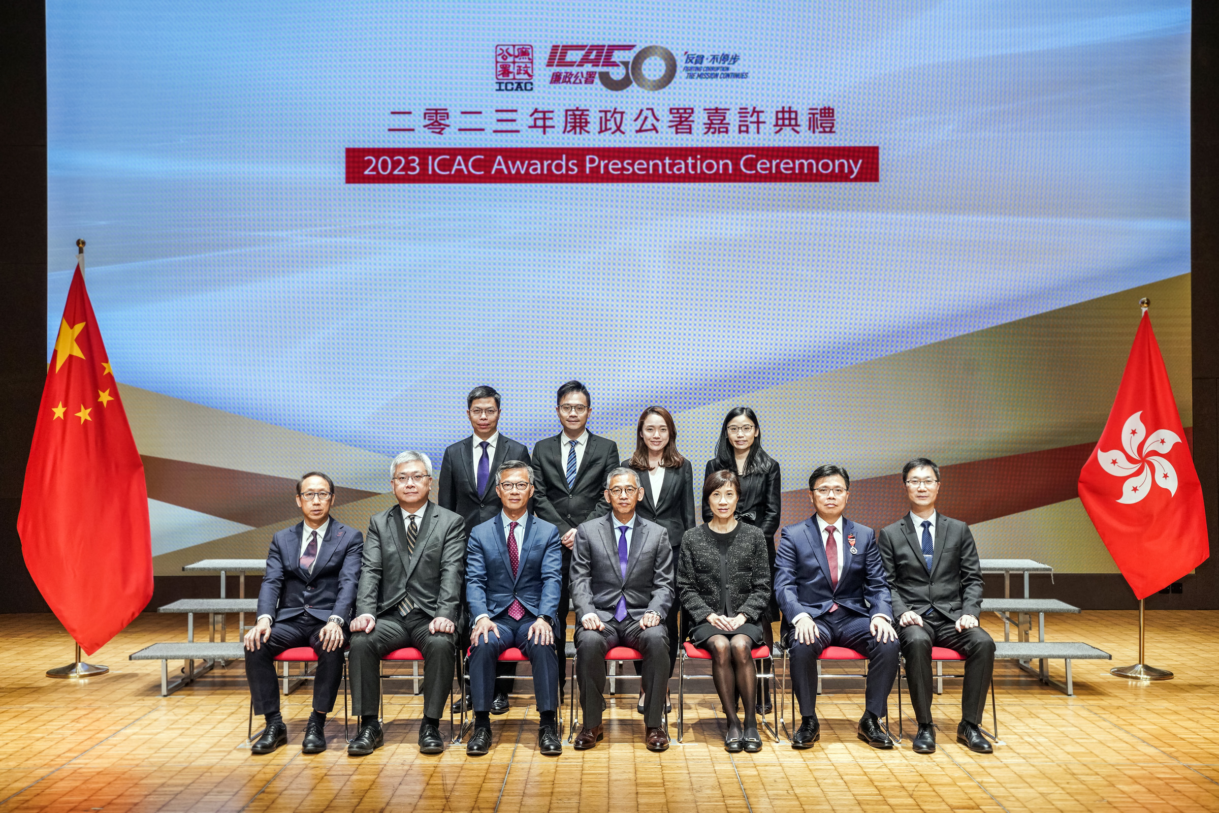 胡英明亦颁发纪念品予早前获政府颁发廉政公署卓越奖章的副廉政专员及执行处首长丘树春,以及另外两位获颁廉政公署荣誉奖章的前廉署人员徐壮石和郭汉文。此外,近110名不同职级的廉署人员,也在嘉许典礼上获颁奖章、证书或纪念牌,以表扬他们长期为廉署及政府服务。