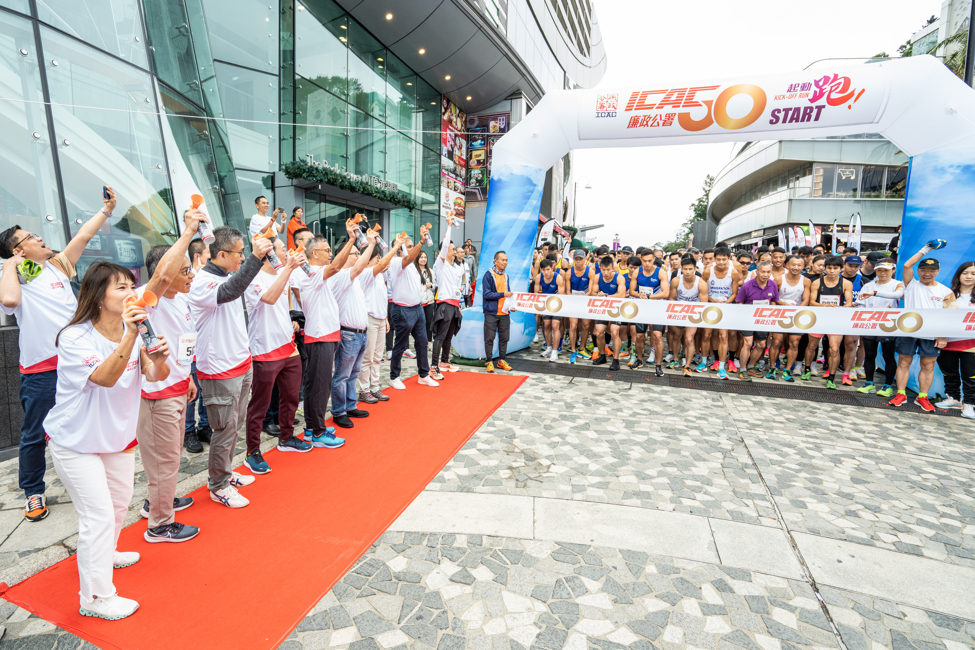 廉政公署庆祝明年成立50周年,今日(12月16日)率先举行廉署「反贪.不停步」起动跑,约300名廉署人员及嘉宾齐集太平山顶,身体力行展现反贪人员的坚毅和决心。