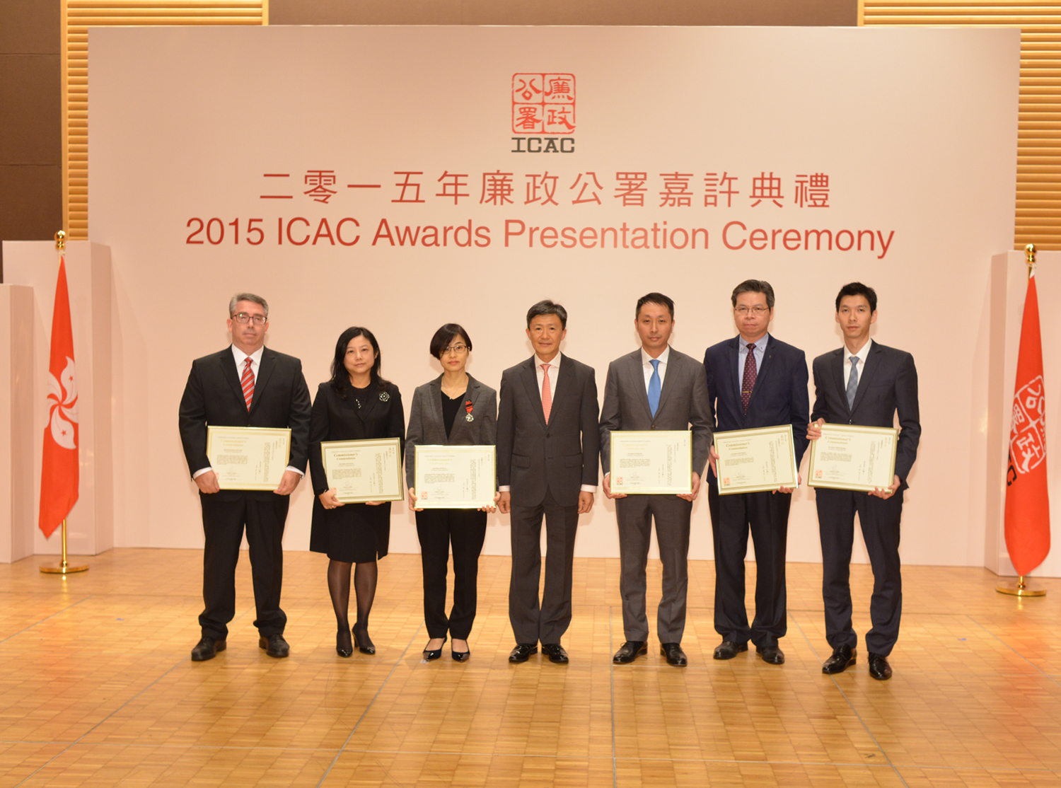在今日的嘉许典礼中,七名廉署人员获颁廉政专员嘉许状,以表扬他们在三宗重大案件中,发挥杰出领导才能、调查能力及专业才干。