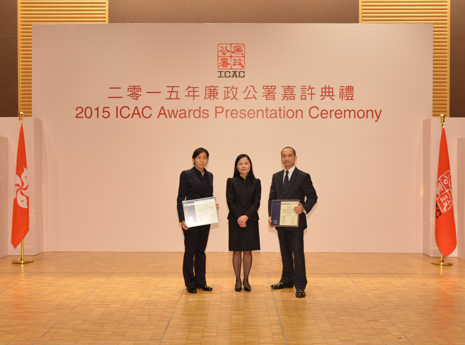 总防贪主任潘玉英及高级防贪主任李敏瑜在为社会福利界非政府机构编制行为守则范本时表现优异获嘉许,而总防贪主任张展杰则因编制与公职人员往来的诚信防贪指南时表现卓越专业才干而获嘉许。