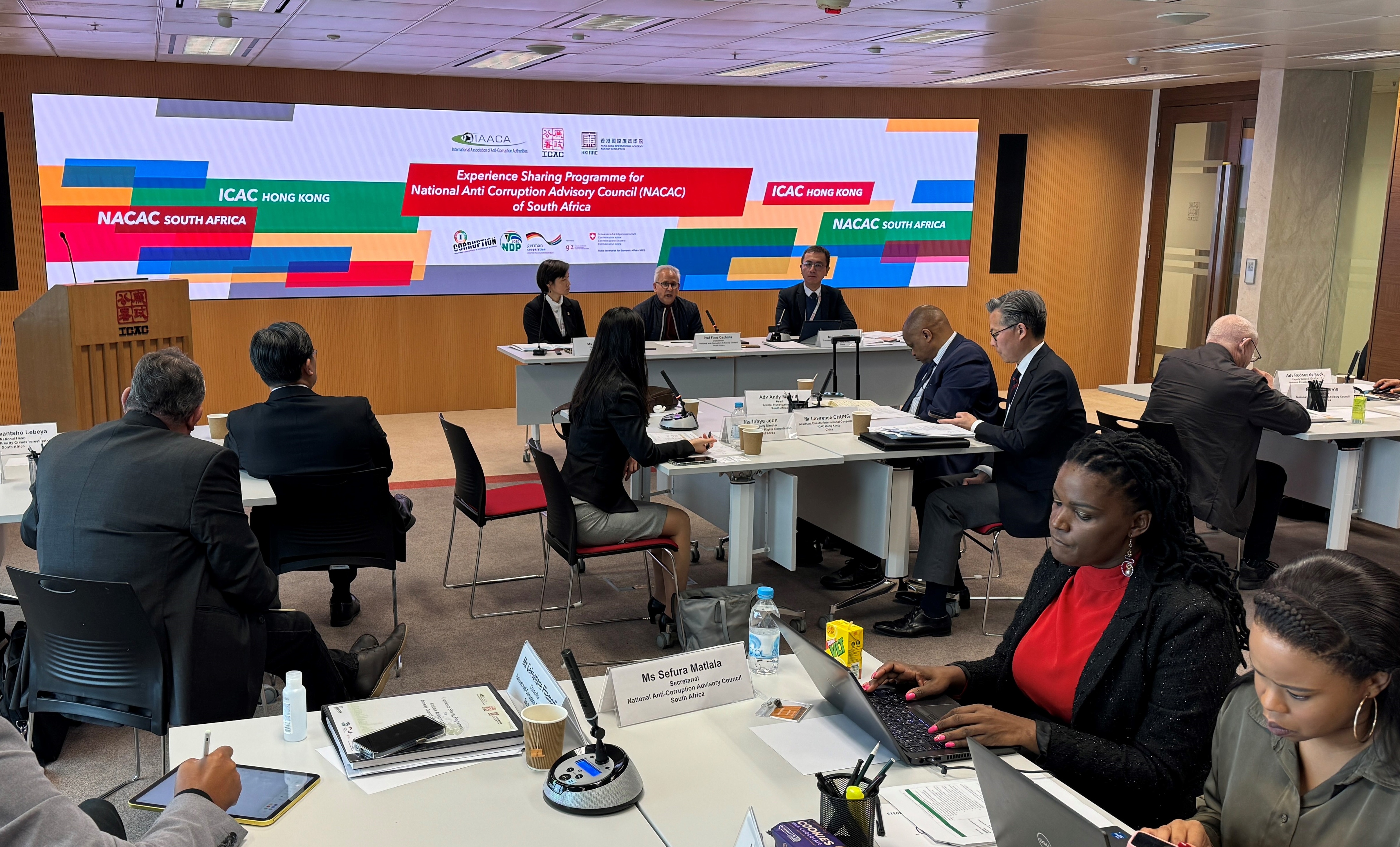 是次「南非国家反贪谘询局经验交流课程」星期一(3月11日)开始,为期5日,于今日(3月15日)完成。廉政专员胡英明早前与南非国家反贪谘询局及南非反贪机构的代表交流时表示,期望学员能将反贪经验带回国家,促进当地廉政发展,不同部门的廉署人员亦致力作好准备为南非的反贪人员提供协助。