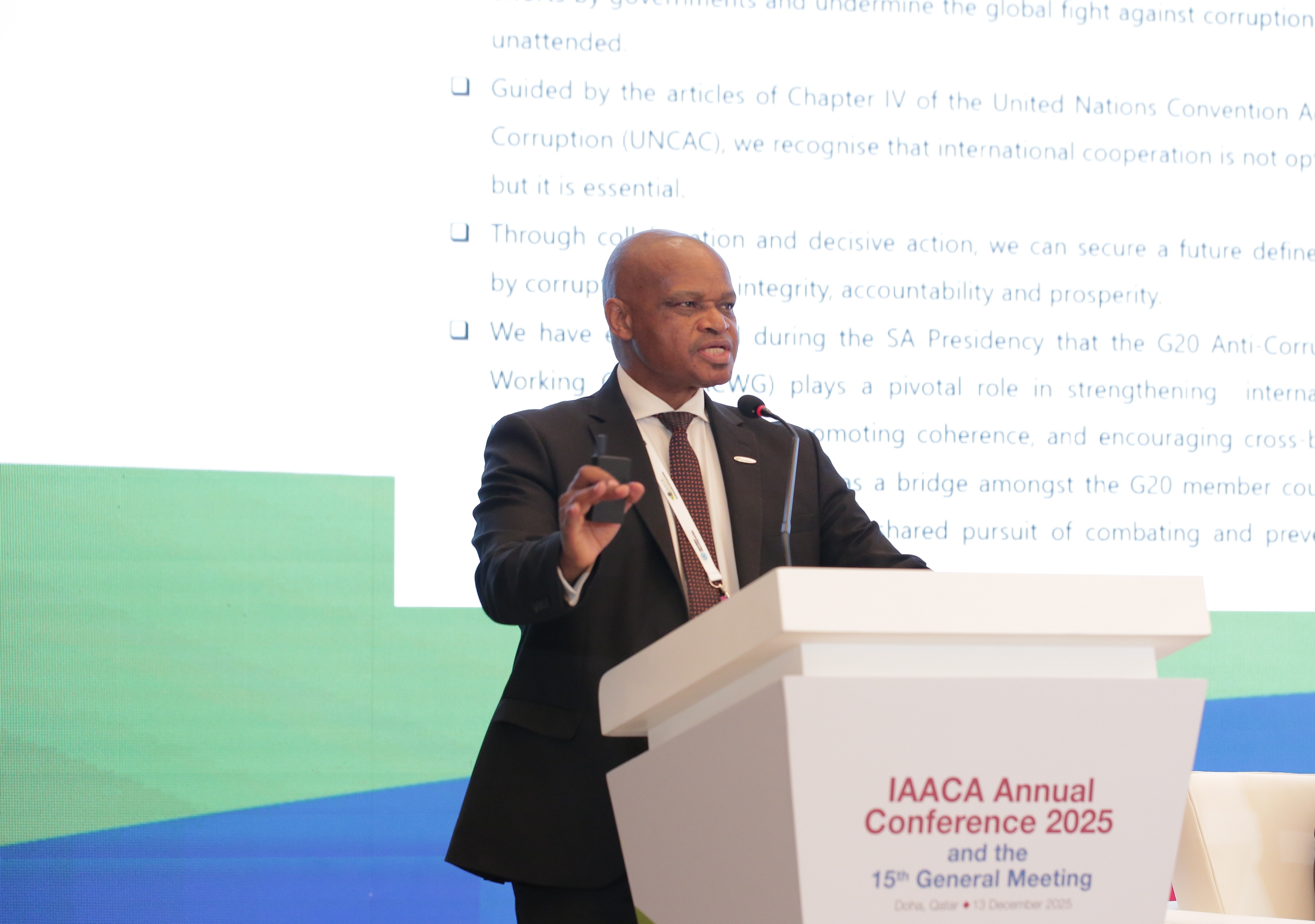 廉政专员胡英明日前(12月13日)以「国际反贪局联合会」(联合会)主席身分,透过视像方式,出席在卡塔尔首都多哈举行的联合会周年大会并致开幕辞。