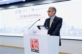 廉政专员胡英明出席合作备忘录签署仪式时表示,香港作为国际金融中心,必须坚守廉洁诚信的基石;而会计业界在维护市场诚信、强化企业管治方面担当关键角色。他表示:「合作备忘录象征廉署的实战经验与香港会计师公会的专业影响力结合,携手培育廉洁和具专业能力人才,有助提升业界整体诚信水平,强化会计专业在日常工作中识别及防范贪污风险的能力,共同守护香港国际金融中心的稳固根基。」