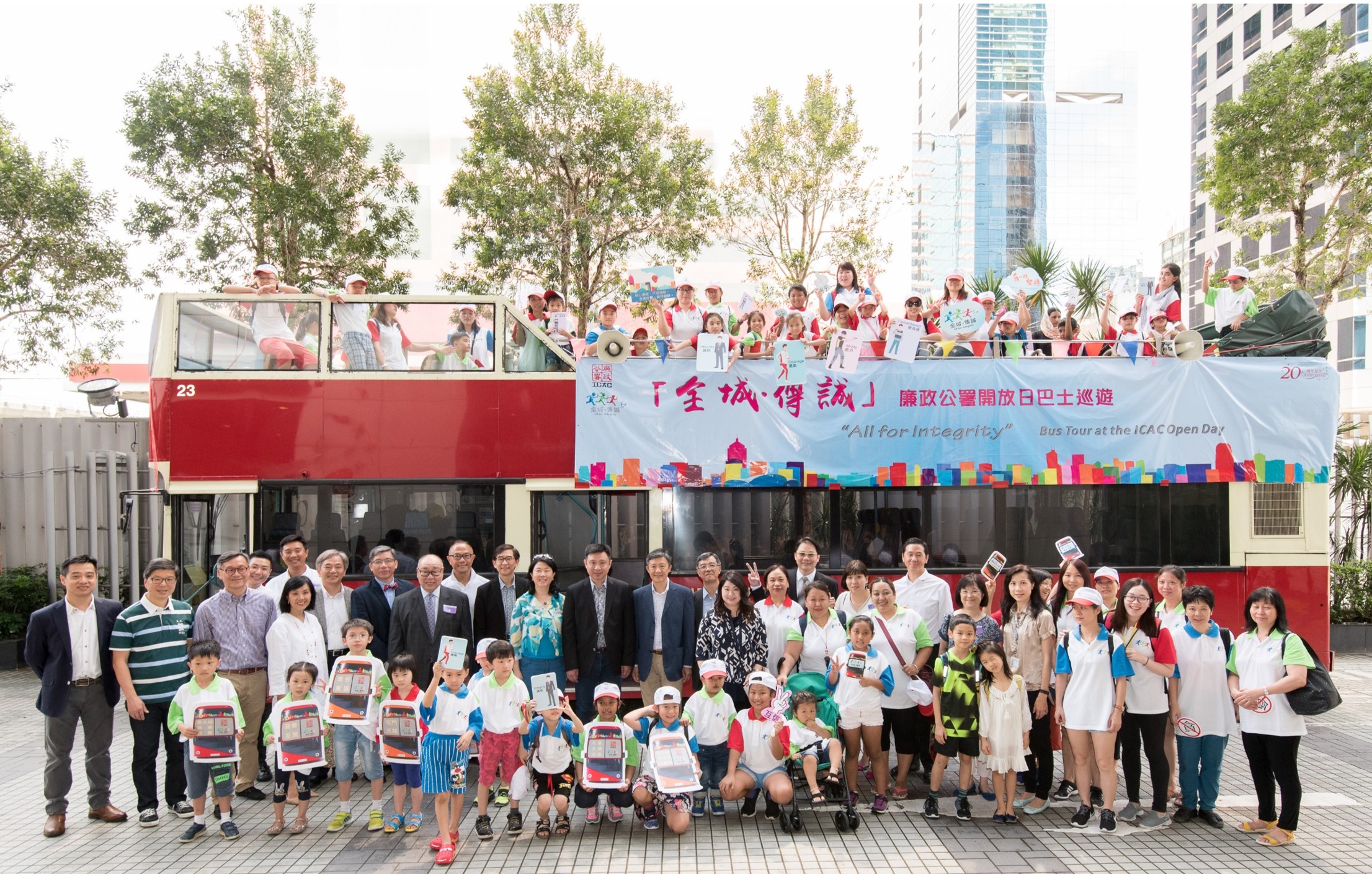此外,白韫六联同地区团体及廉署多个谘询委员会的委员,为廉署的全港巴士巡游活动揭开序幕,该活动是廉署跨年度「全城‧传诚」全港大型倡廉活动计划本年度重点项目之一。