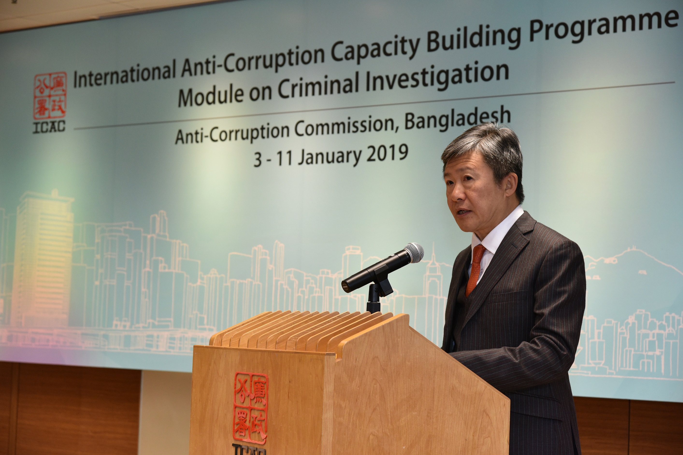 参加课程的二十位孟加拉反腐败委员会成员,是从总部和十七个分布孟加拉全国的分区办公室三百位反贪人员中甄选出来。在为期七天的培训中,他们将参与二十多个与执法相关的课程,包括会见投诉人、证人及疑犯、情报蒐集、策划行动、拘捕及搜查、资产及证物处理、法证会计、侦查犯罪得益和在法院作供等。