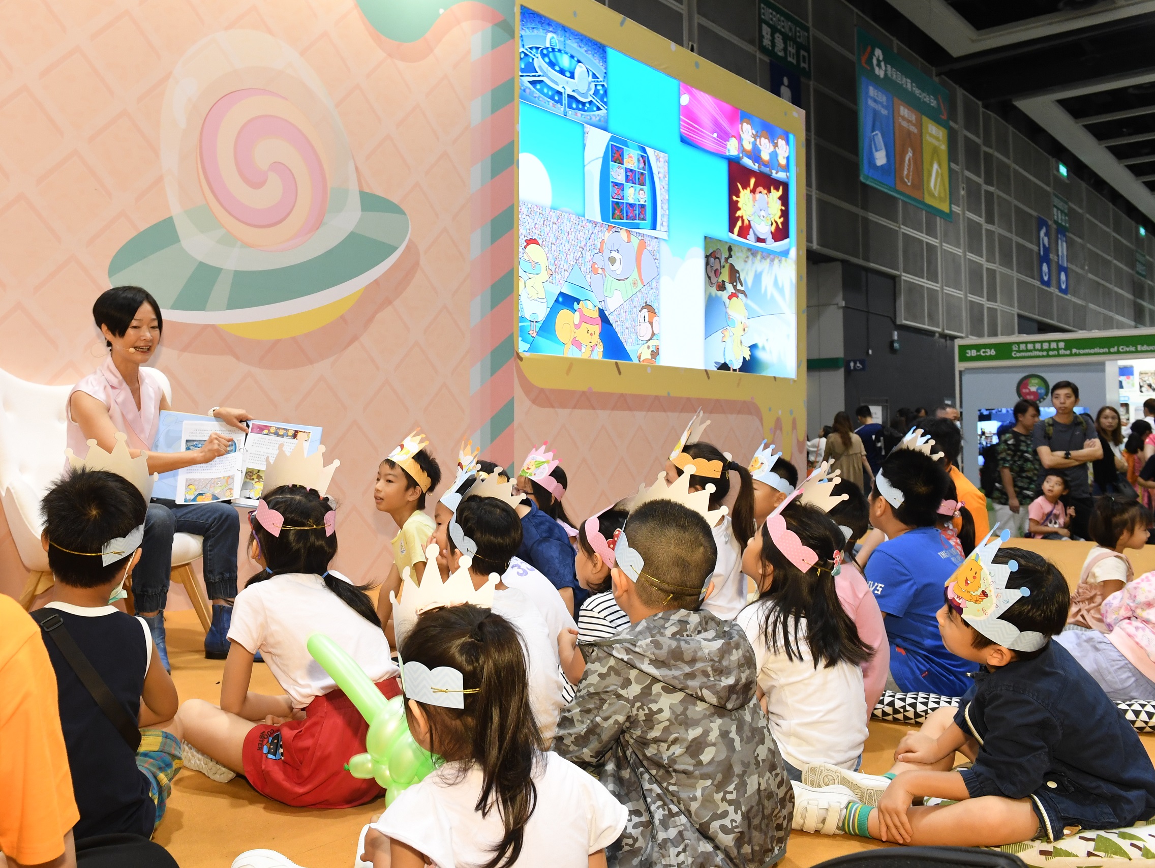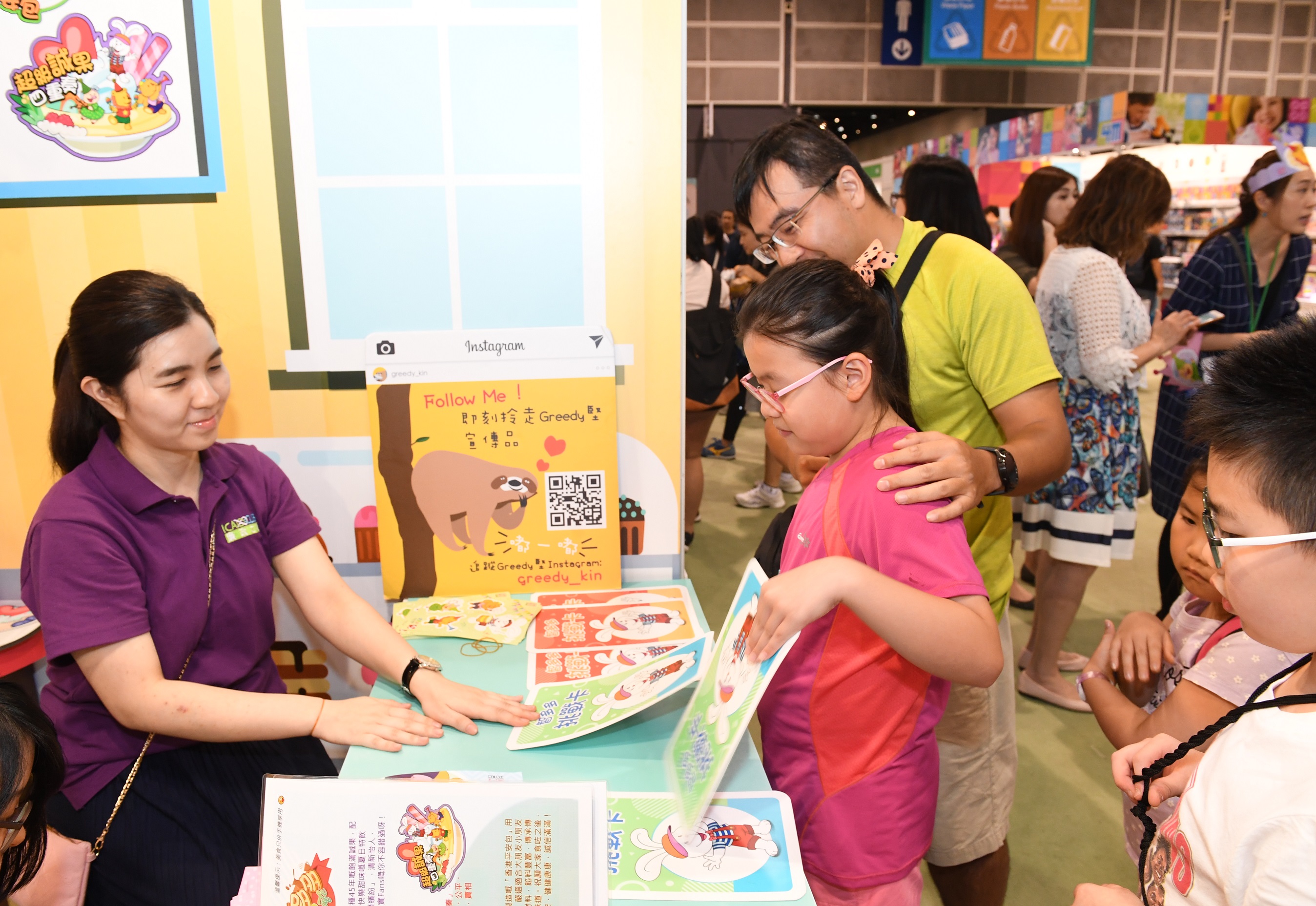 廉署的書展攤位又為小朋友舉辦多項特別活動,包括與卡通人物合照,急口令遊戲和「我最喜愛的美食道具」選舉。廉署編製的德育刊物和「智多多」教材套亦在攤位內展出。